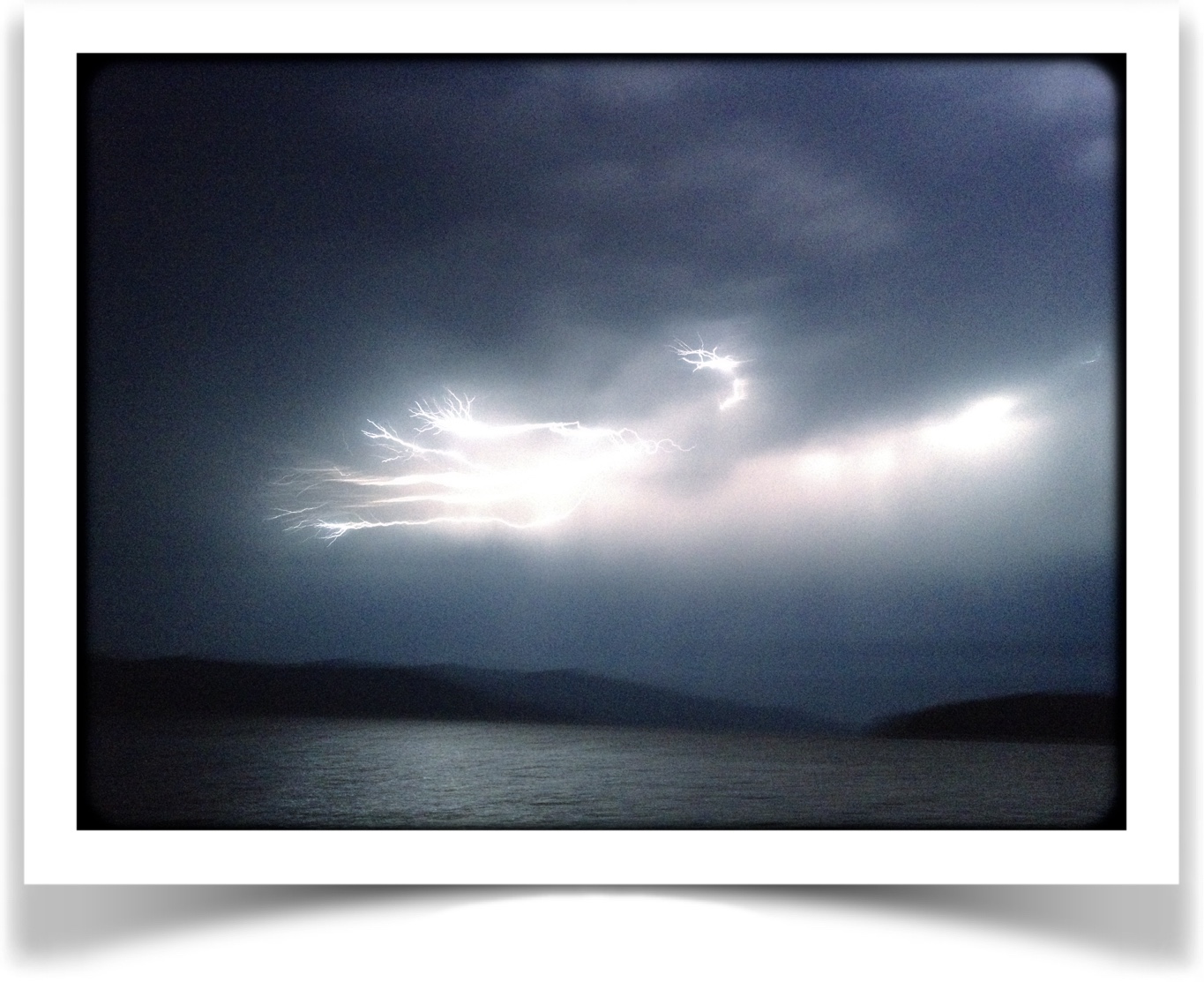 We had an amazing storm last night and I watched it decorate the lake with the black mountains a dramatic backdrop. I’ve never heard a storm so loud and so powerful. It seemed to penetrate my very being. Even as the thought entered my mind that Great Thunderbird was coming to me I caught this image and I was completely awestruck.