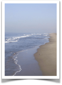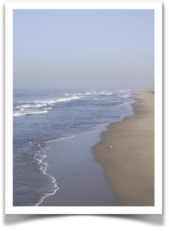The colors and textures seen here please me to no end.  The sand a light tan color looks like sueded silk, and the ocean a beautiful gray-green blanket with its frothy language spilling onto the beach.